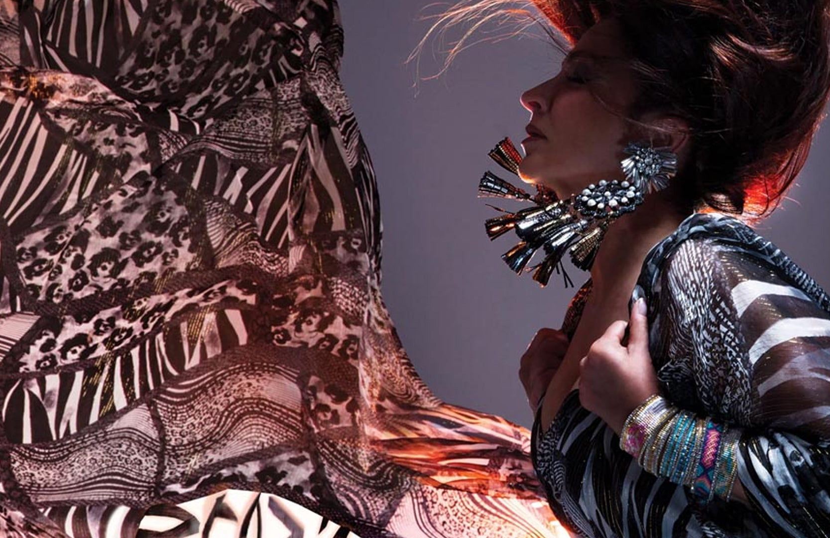Wearing Talesh Los Roques Tassel Statement Earrings.