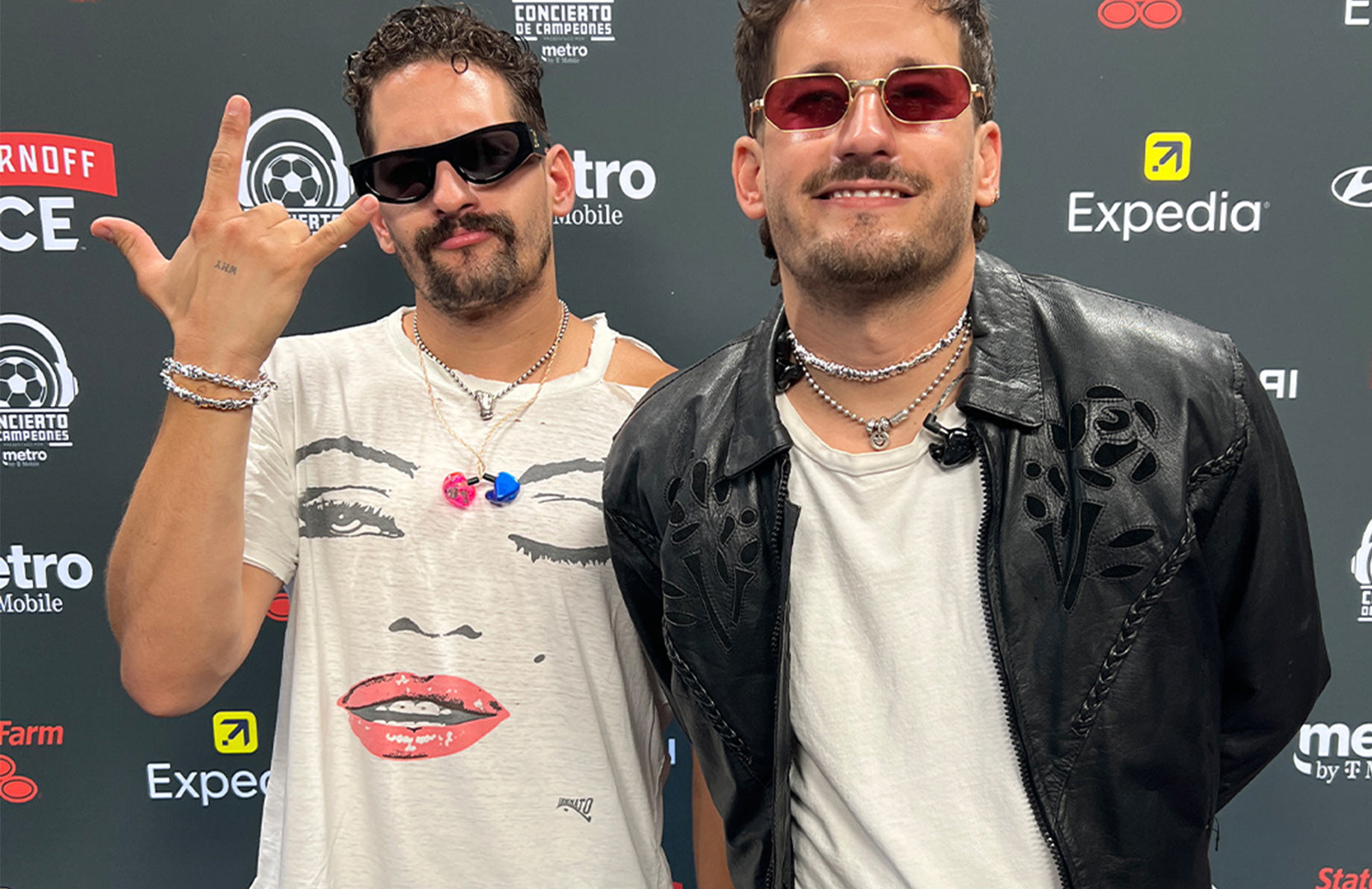 Go to PostVenezuelan singers, Mau and Ricky Montaner wear Ayounik at the Concert of Champions red carpet in Miami.