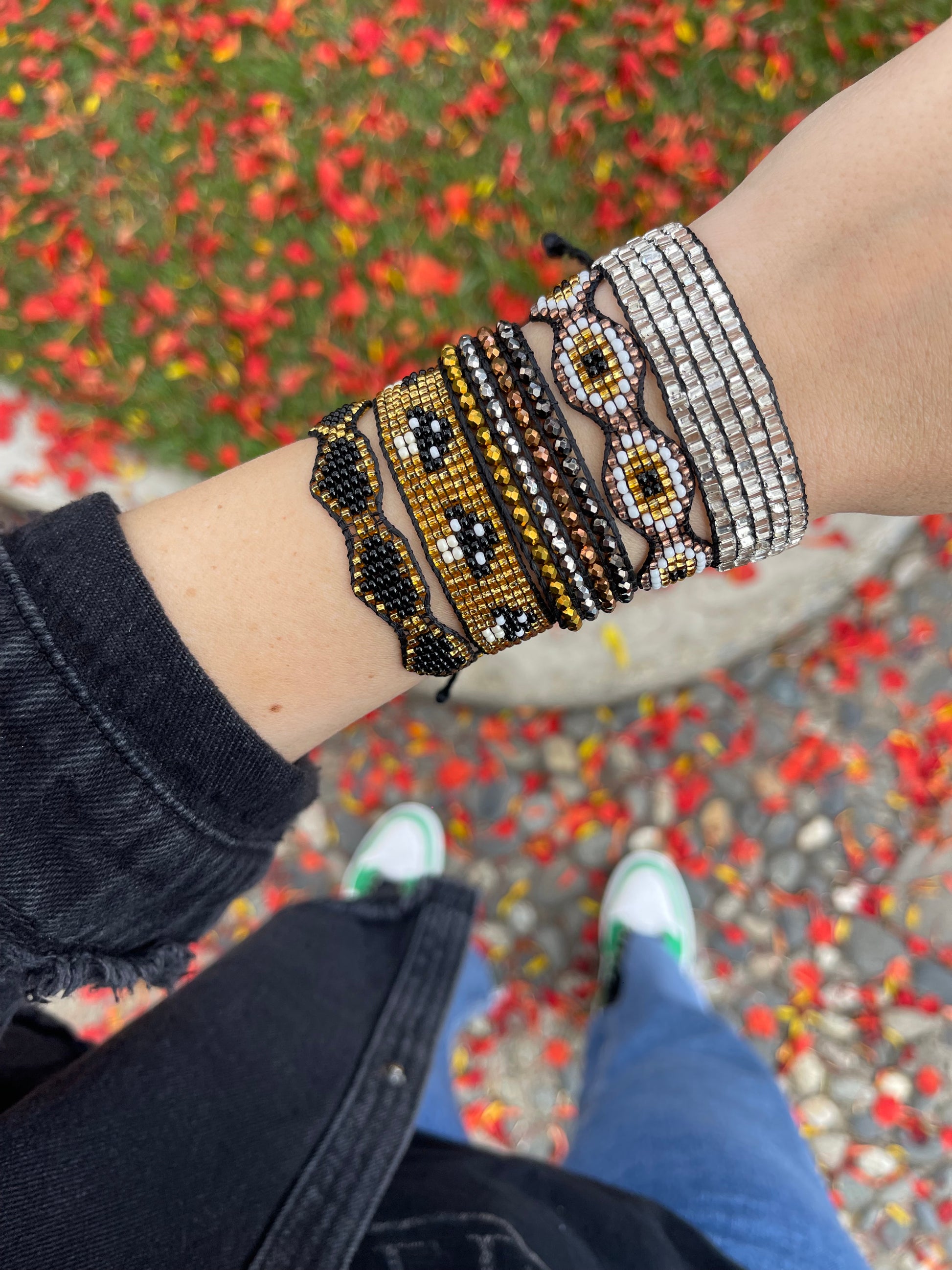HAPPY ACCESSORIES FOR A HAPPIER YOU – Made with Czech beads on a wax rope using a beadwork technique in which seeds are woven together using thread to create the illusion of a flat fabric. Colors don’t fade and it can be worn by women, men and kids alike!