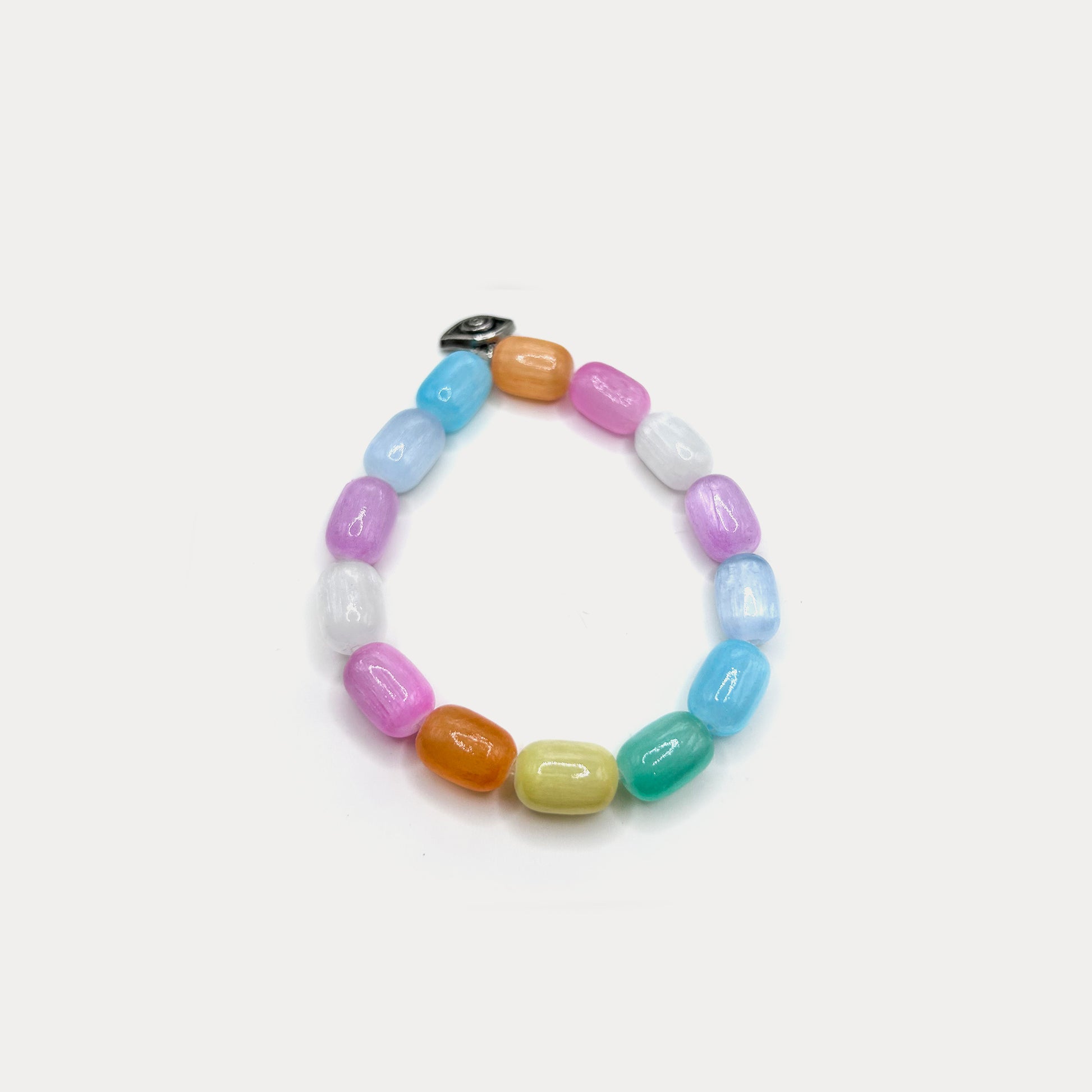 HAPPY ACCESSORIES FOR A HAPPIER YOU – This Bracelet comes in black, white and grey creating an eye. The hair is made with real rabbit fur and the eye is shaped using a crystal trim. Czech beads on a wax rope are woven together using a beadwork technique that creates the illusion of a flat fabric. Colors don’t fade and it can be worn by women and girls alike!